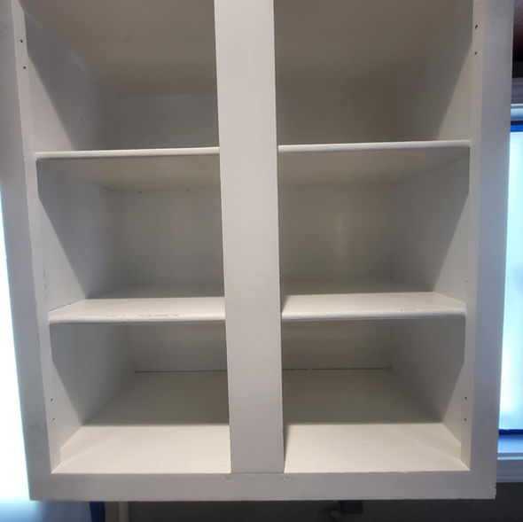 Day 3 & 4: Once the cabinets are sanded and any scuffs, holes, and scratches are repaired, he starts spraying! Primer and finish coats go on faces and bases. Depending on the kitchen size, length of this step can vary.